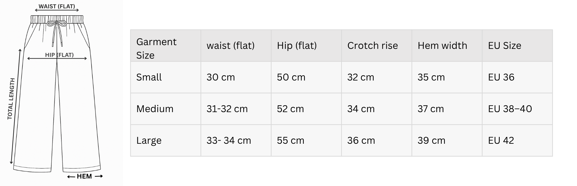 Loose-fit ribbed pants with an elastic waistband and adjustable drawstrings. Features wide legs and singular back patch pocket.